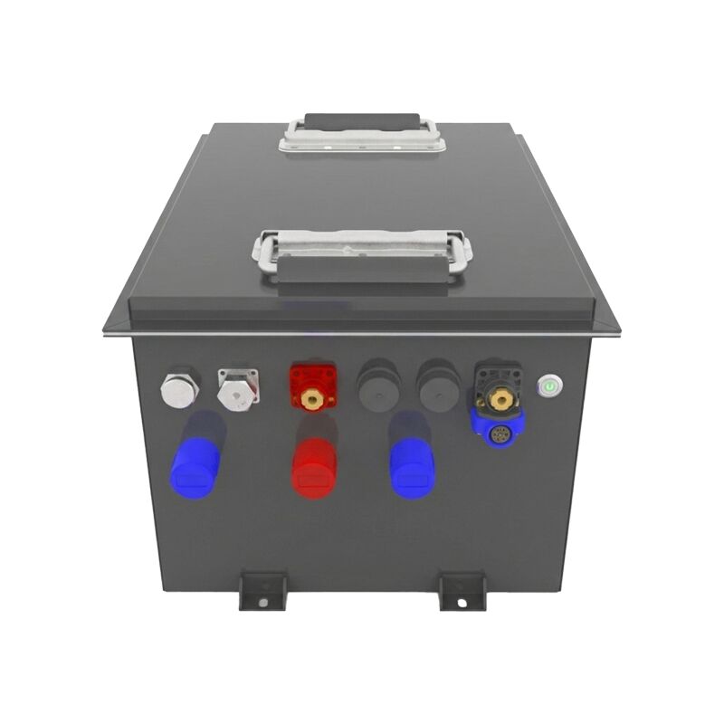 الجهد الاسمي هو 51.2 فولت بسعة مقدرة 105 أمبير في الساعة وطاقة إجمالية 5376 واط ساعة. المقاومة الداخلية هي ≤45 ملي أوم. تصل كفاءة الذهاب والإياب إلى 98 بالمائة. التفريغ الذاتي أقل من 5 بالمائة شهريًا. تم تكوين البطارية بـ 16 خلية على التوالي وخلية واحدة على التوازي (16S1P). يمكن توصيل بطاريات متعددة على التوازي لتوسيع السعة. الأبعاد هي 460 مم طول، 334 مم عرض، و 247 مم ارتفاع. الوزن 46 كيلوجرام. يتميز الغلاف الفولاذي SPCC بتصنيف IP67، مما يجعله مقاومًا تمامًا للغبار ومقاومًا للماء حتى عمق 1 متر لمدة 30 دقيقة. نوع الطرف هو FCC1020 مصنف لـ 200 أمبير. كيمياء الخلية هي LiFePO4.